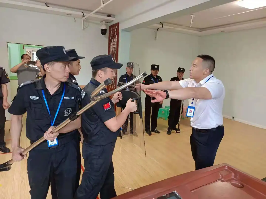 随后潘经理通过生动的现场演示,详细的动作讲解为保安讲授盾牌、警棍、钢叉等防暴器材的使用技巧及注意事项,用以应对突发事件。他强调,平时不断练习,关键时刻才能发挥重要作用。